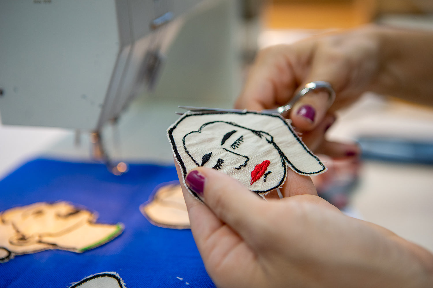 I think computerized machines are cool to watch but I rather do the embroidery myself. I stretch the fabric on a hoop and draw with the needle.