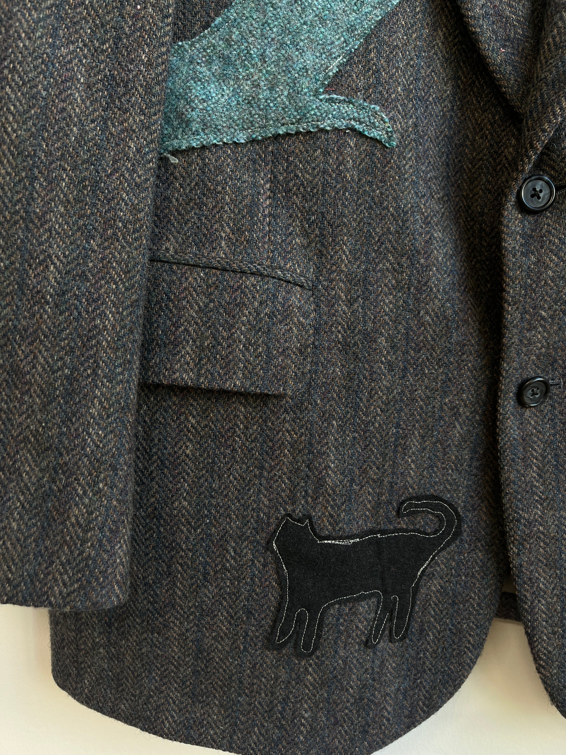 Up-cycled Navy Blue Wool blazer with weird appliqué